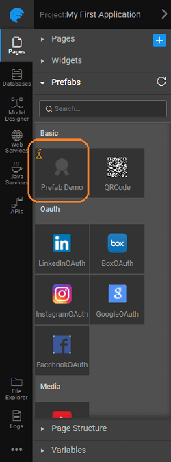 Prefabs are reusable application parts that interact with APIs and data on the web. Prefabs can be embedded and integrated into your applications with ease. You can create your own Prefabs using WaveMaker.