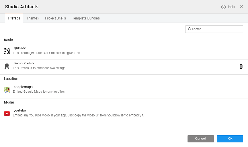 If you want to share the Prefab with another WaveMaker Developer, Export the Prefab as Zip. This zipped file can be imported from the Prefab section of the Project Workspace.