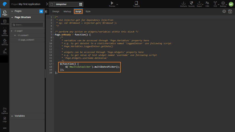 In the script tab attach the mulitdatespicker