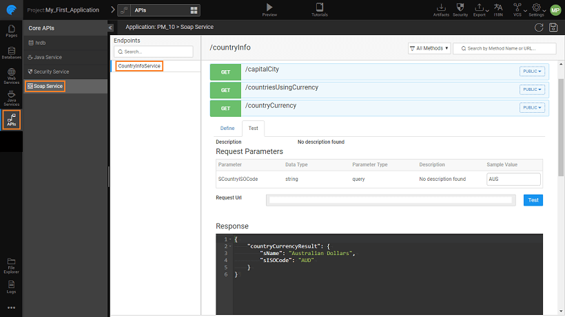 The APIs generated by importing a SOAP Service are listed in API Designer.