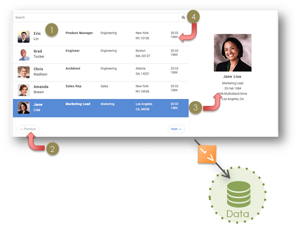 3. The result from API call is reflected in the Data which in turn changes the user data view.