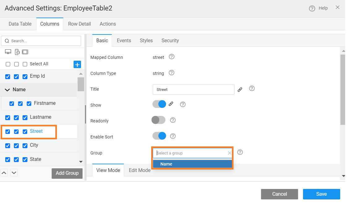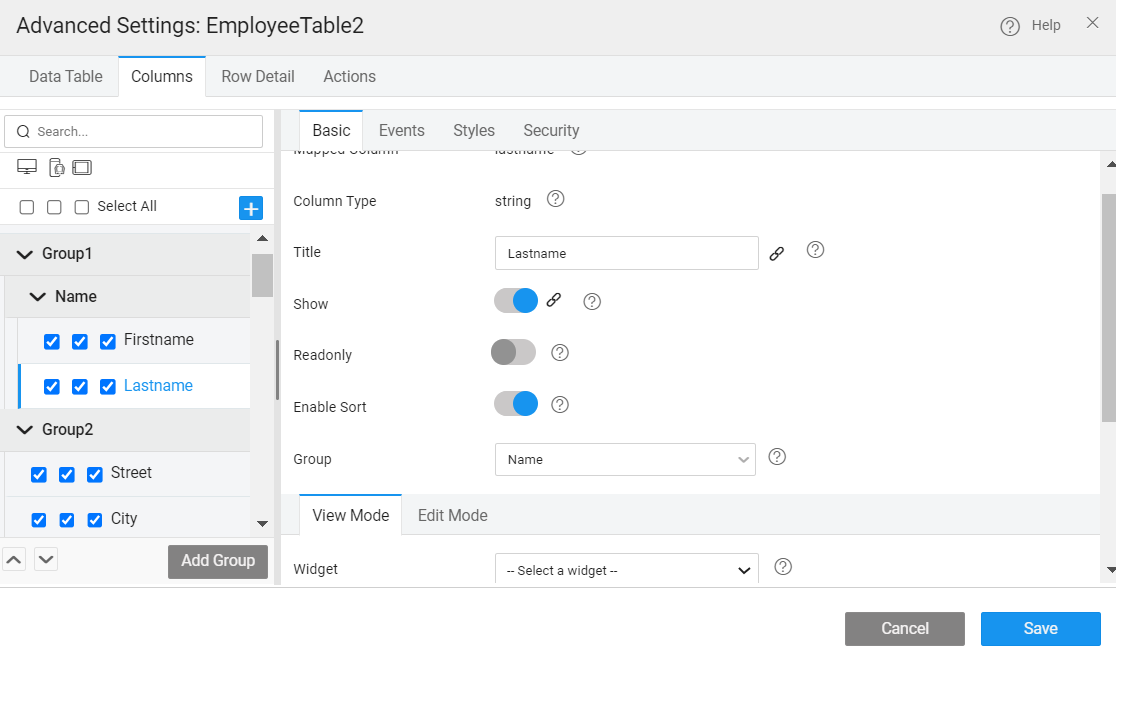 All the above-mentioned options are available from the Columns tab of the Advanced Settings property.