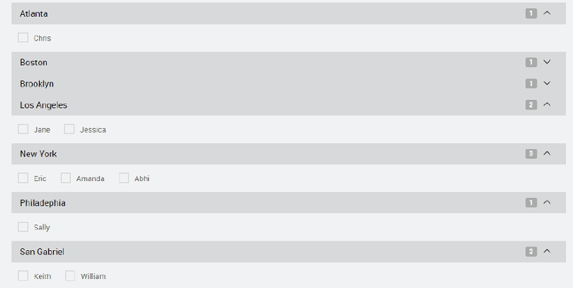 Group by | This property allows for grouping the items in the variable bound to the checkboxset dataset by selecting one of the field names from the drop-down list. |