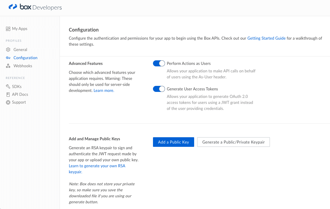 2. Create an app (https://app.box.com/developers/console).