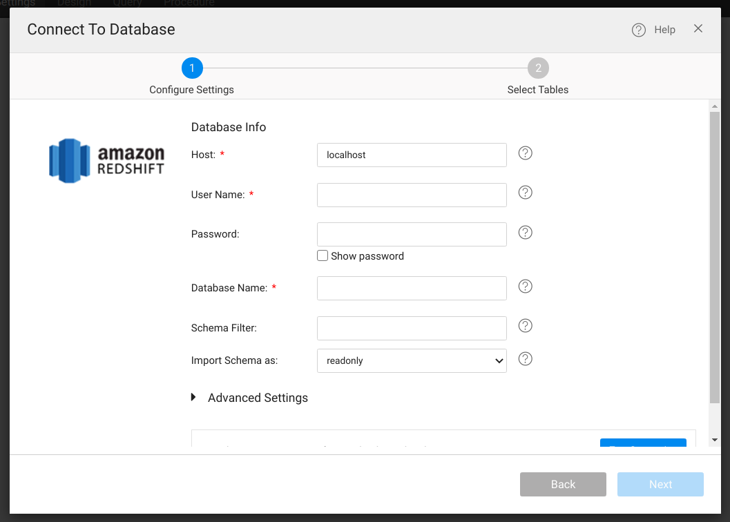 1. In the next step, choose the Database provider. Select Amazon Redshift.