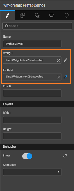 1. Bind the properties (inbound) of the Prefab to the two text box.