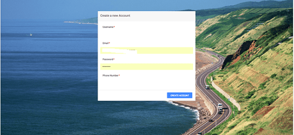 - On running the application, the Registration Page shows up. This page allows you to create a user who will be added to the user pool created.