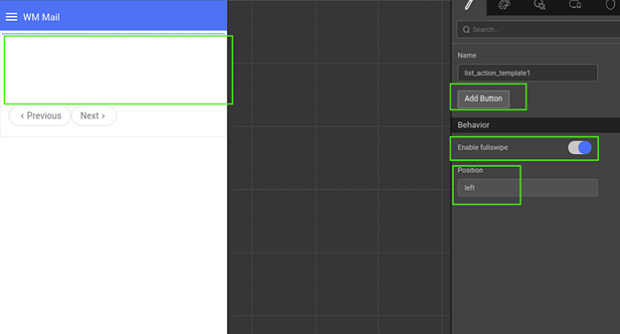 2. If LeftActionTemplate or RightActionTemplate is selected, then a list action template view will be added on the list with Position set to left (or right).