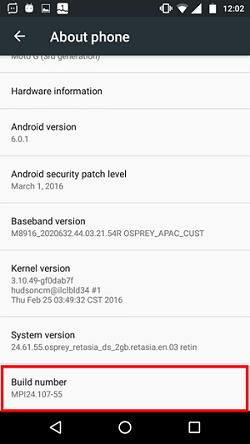• Go to Settings > About Phone. In ‘About Phone’ page, click on build number for 7 times to enable developer options.