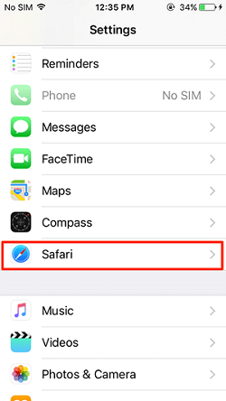 • Open Settings and Tap on Safari