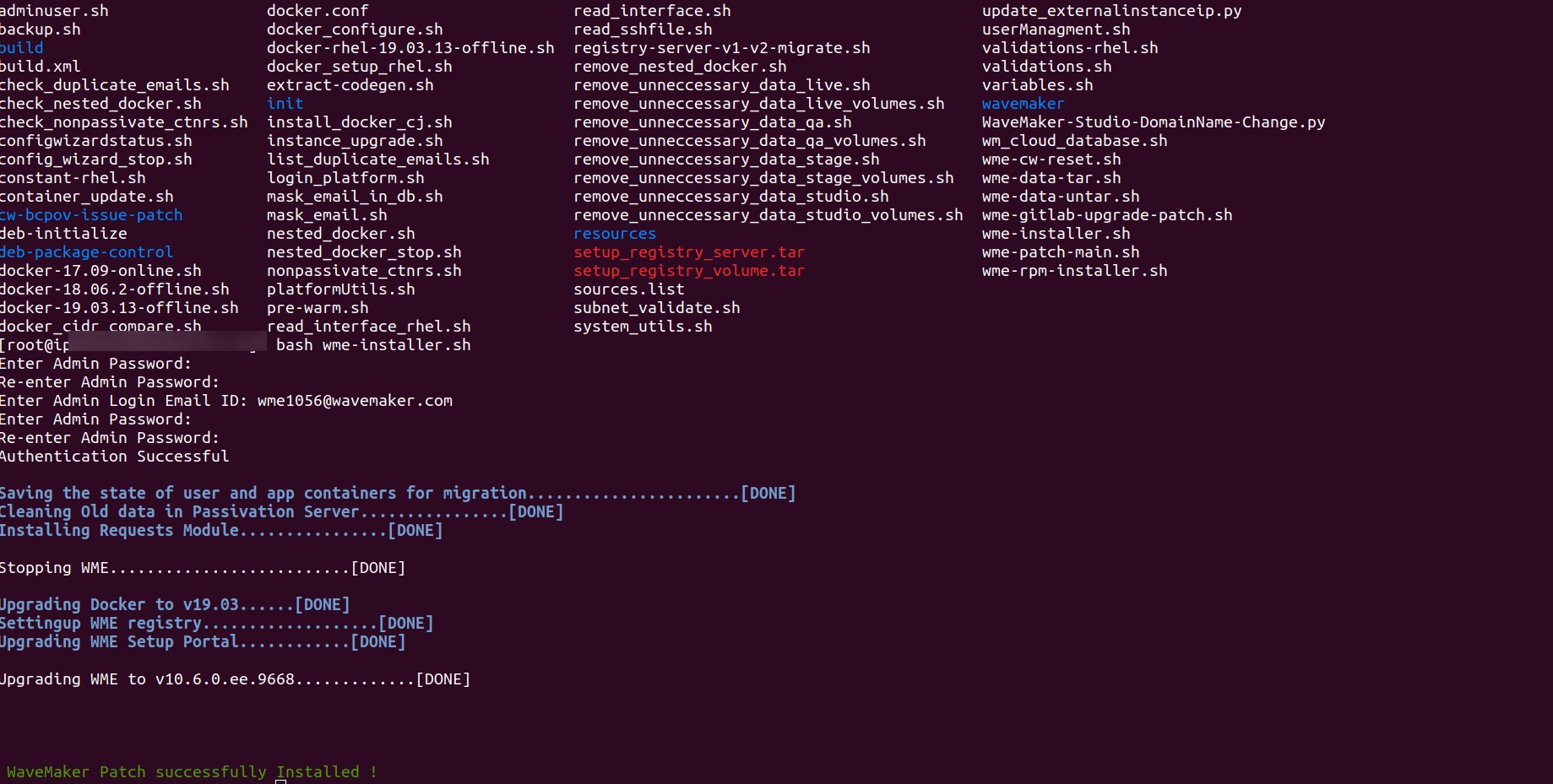 • Extract wme_migrations.tar to /usr/local/content/wme/wme-installer/< version>/resources folder, for extract the content run the following command